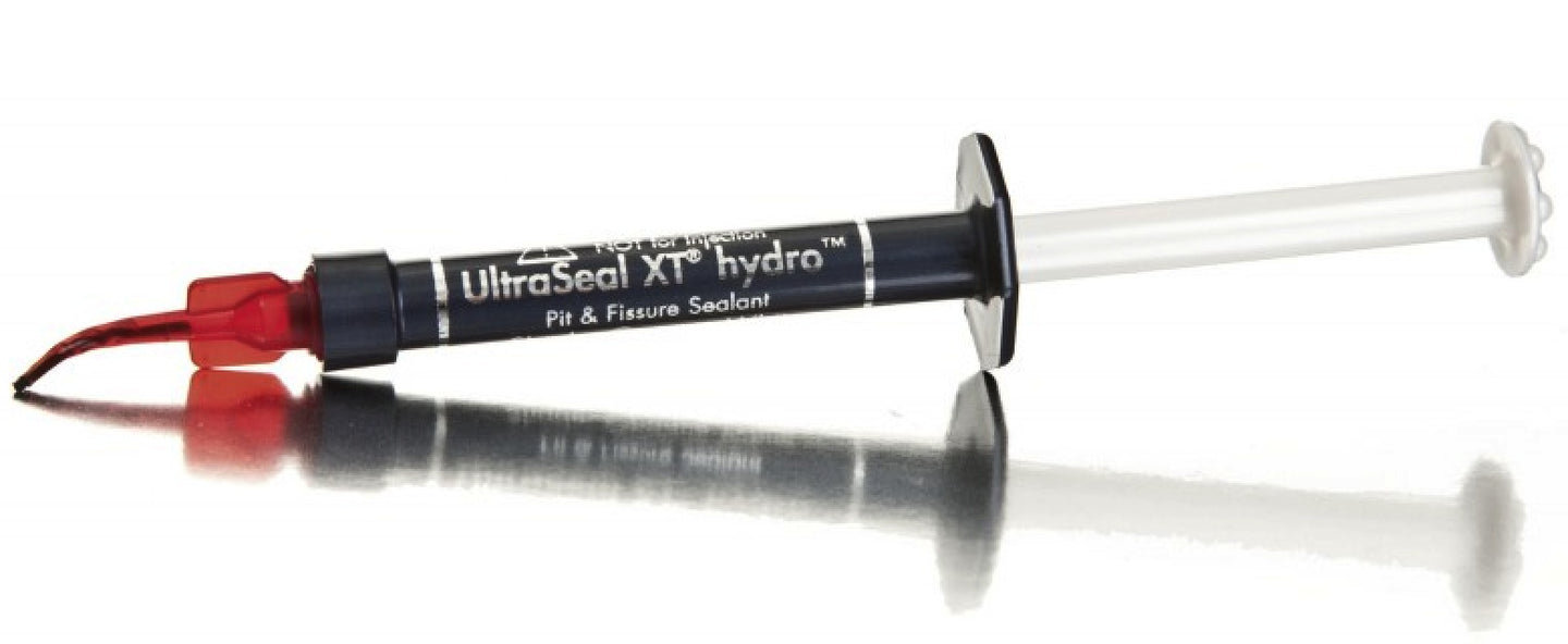 El sellador de fosas y fisuras hidrohidrófilas UltraSeal XT es un sellador compuesto fotopolimerizable, radiopaco y liberador de flúor. Es más fuerte y más resistente al desgaste porque es una resina llena en un 53% y tiene menos contracción de polimerización que los productos de la competencia. La acción del cepillo en espiral de la punta del cepillo inspiral provoca el adelgazamiento por cizallamiento del sellador tixotrópico UltraSeal XT. La resina deja de fluir cuando cesa el adelgazamiento por cizallamiento y se completa la colocación, evitando que se ejecute antes de que se pueda fotopolimerizar. La avanzada química hidrofílica funciona cuando se elimina toda la humedad visible. El hidro sellador UltraSeal XT es más indulgente con la humedad en el fondo de fosas y fisuras.